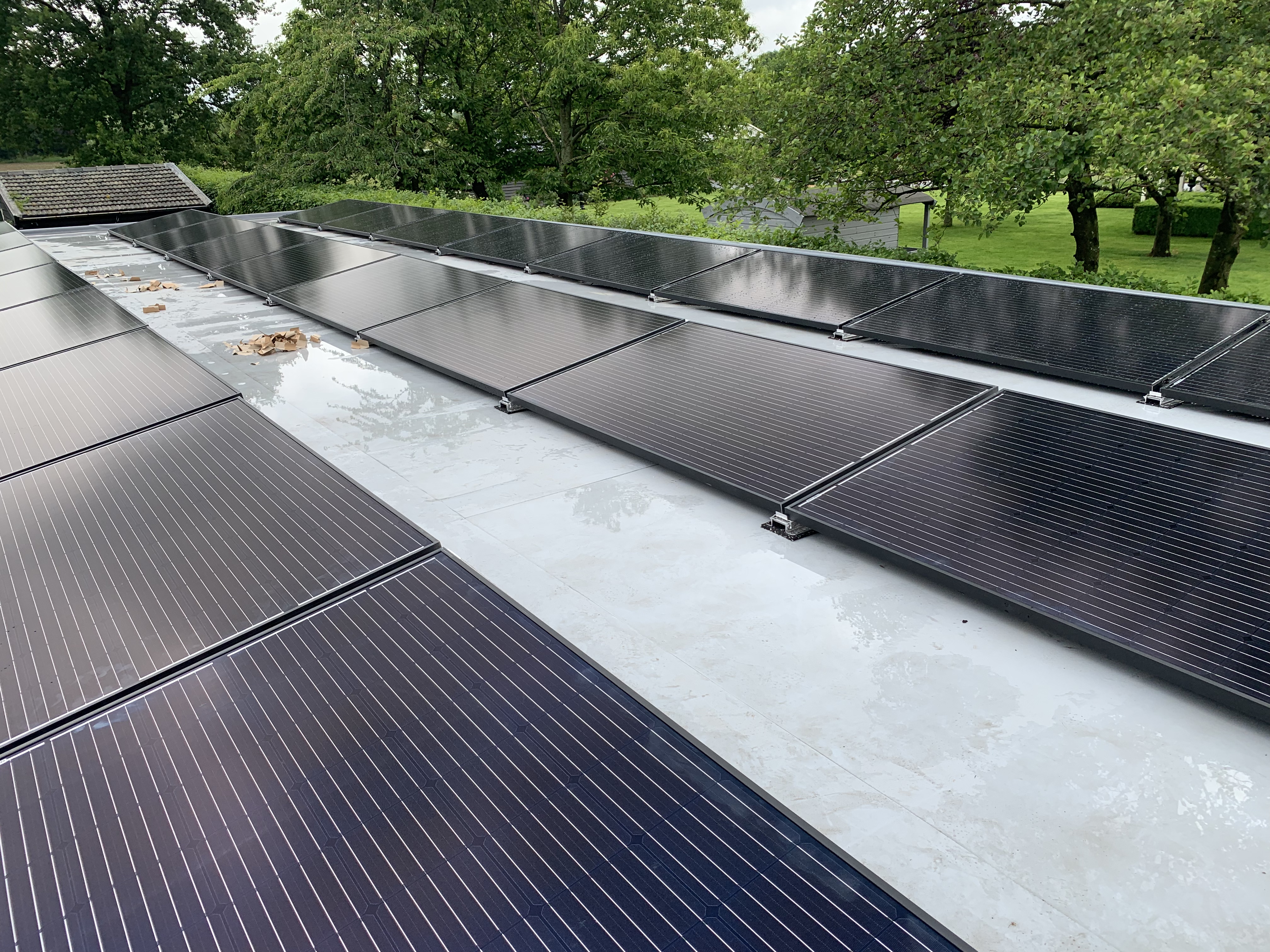 Installeren van 24 zonnepanelen met bijbehorende omvormer.